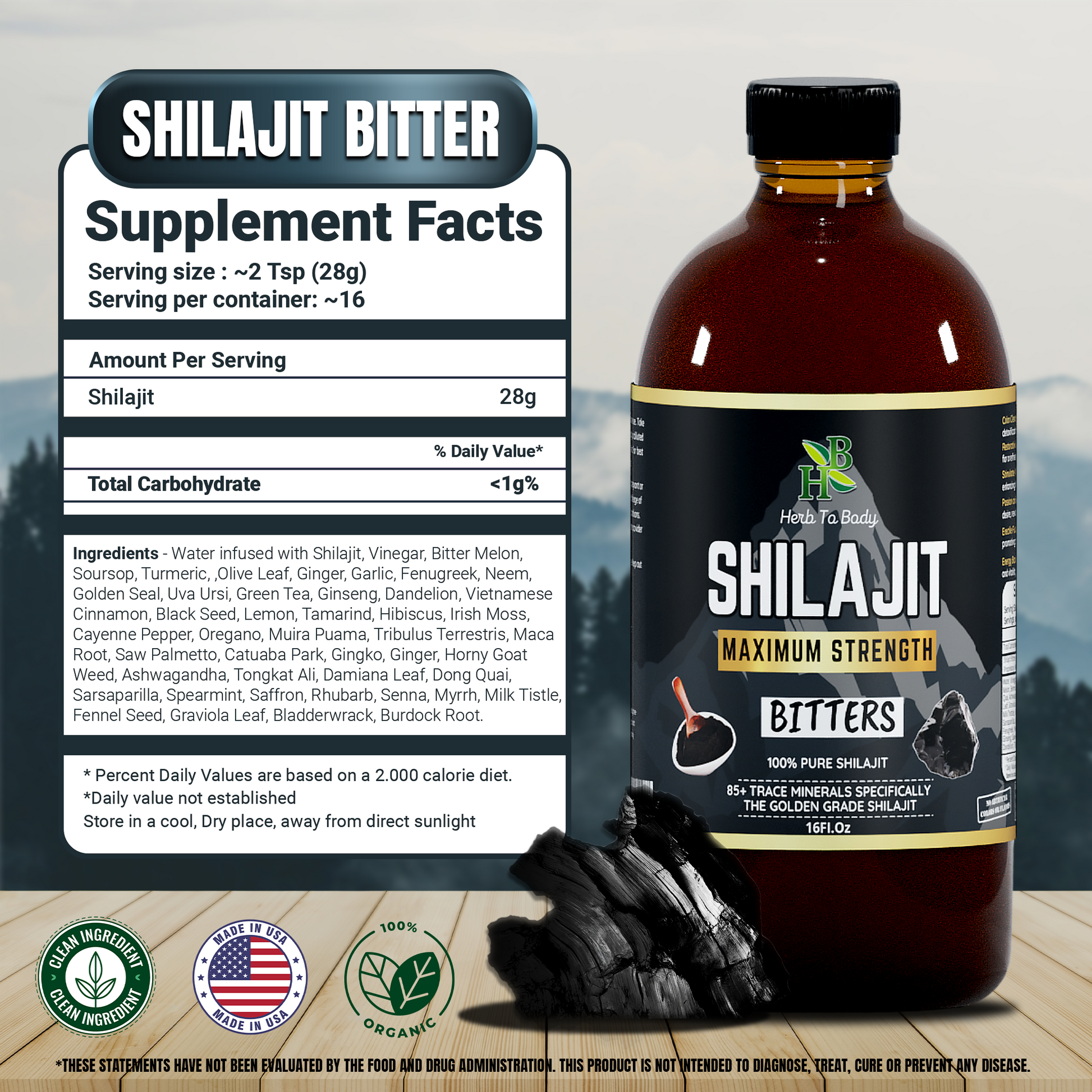 Herb To Body - Shilajit Bitter | 16oz Wildcrafted Herbal Tonic