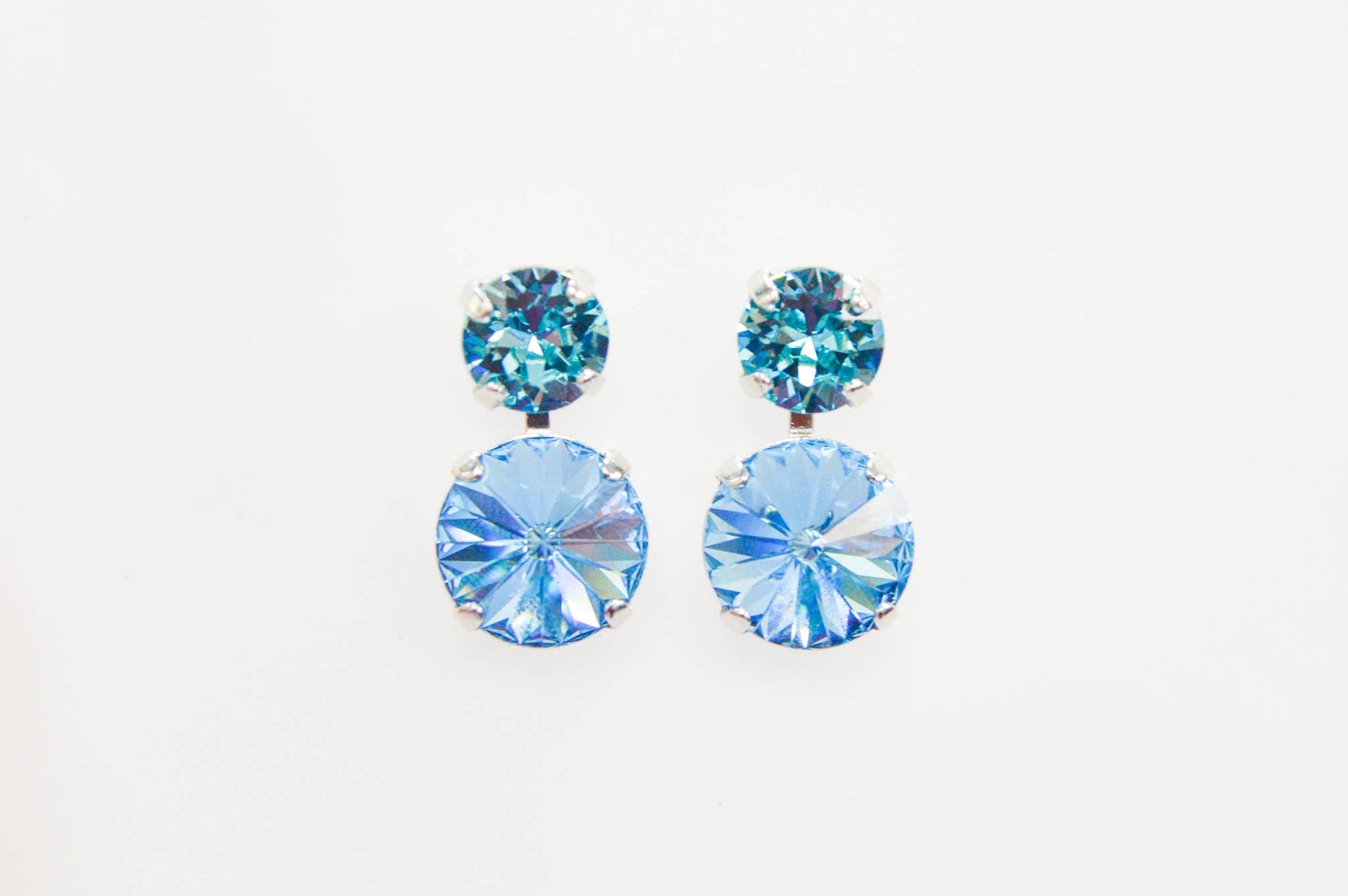 The perfect aquamarine and teal color combo in one earring, our Teal Tides stacked stud earrings!